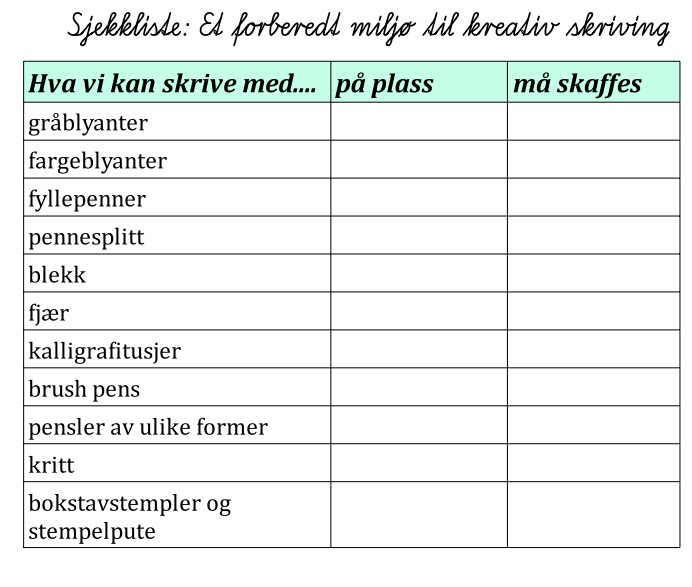 Sjekkliste for et forberedt miljø for kreativ skriving