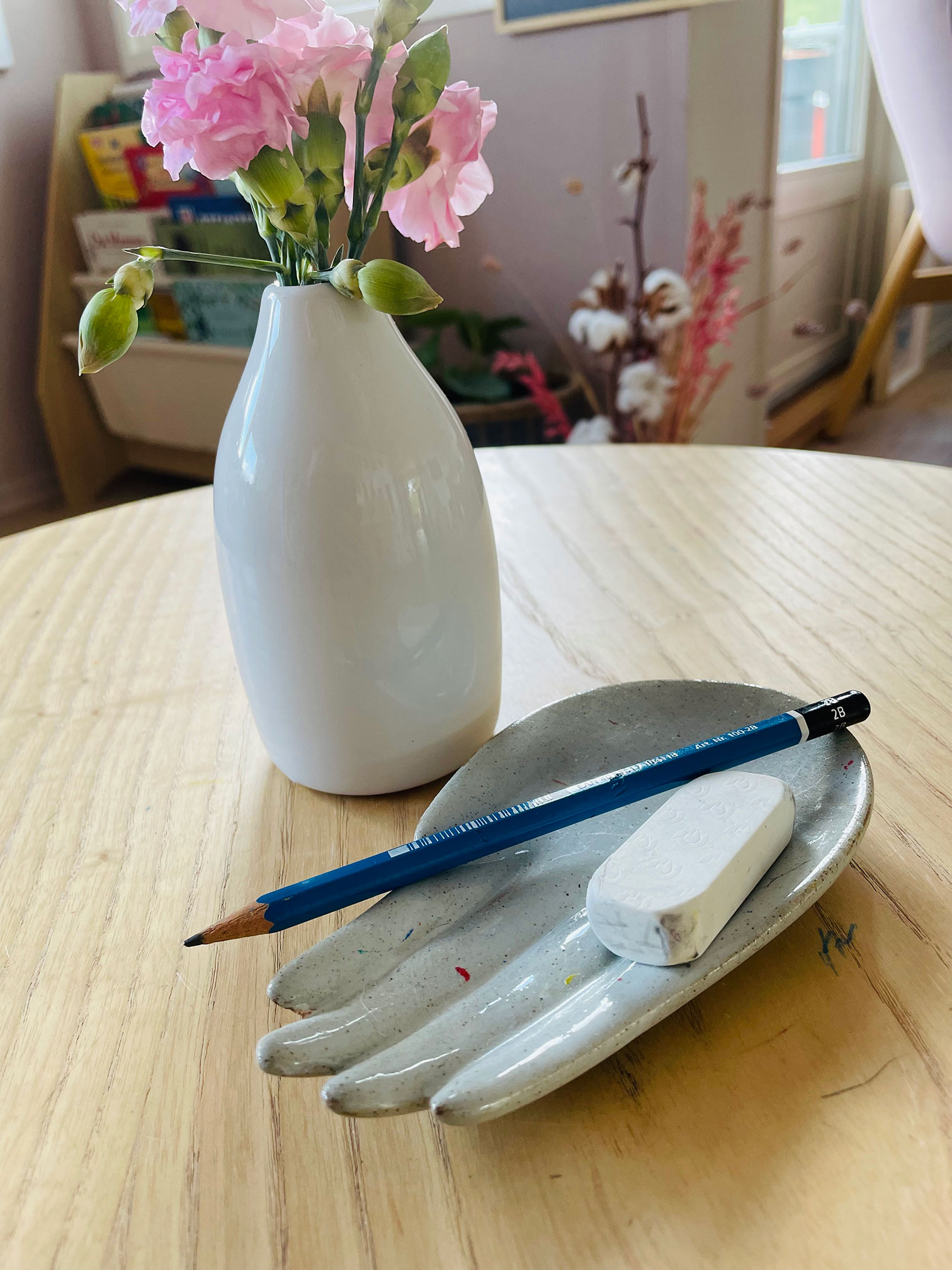 - Tenk alltid: Mindre er mer! Å tilby bare noen få aktiviteter fremmer barnets konsentrasjon. Prinsippet gjelder også generelt: Unngå å ha ting liggende rundt omkring som ingen egentlig bruker. Forsøk å kvitte deg med rotet. Hvis dette er vanskelig for deg eller hvis du trenger tips om hvordan du best kan får til dette, anbefaler jeg Marie Kondo-metoden (har brukt dette selv, noen ganger…).
