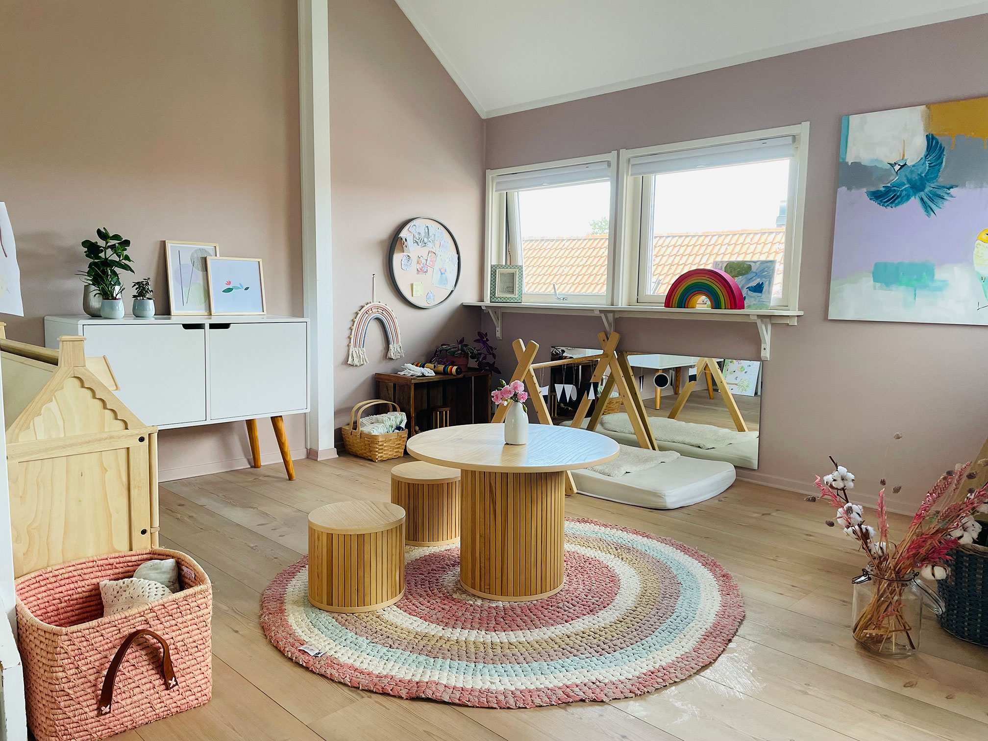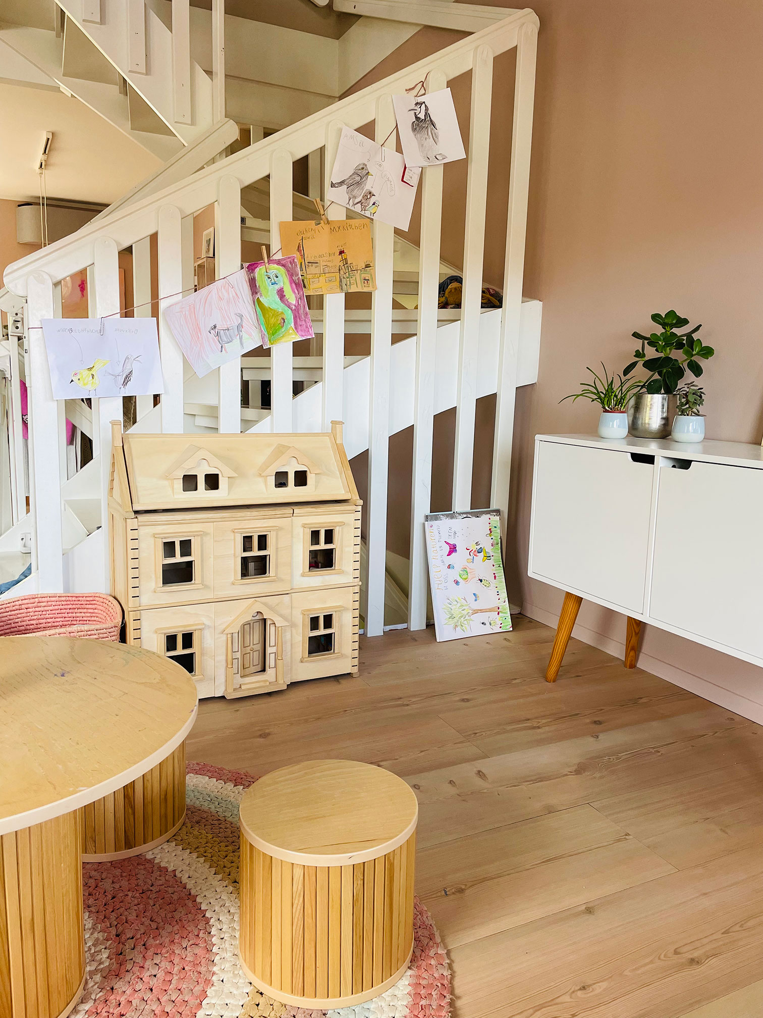 Min datter F som er 7 år bytter ofte selv på ting hun har på hylla si og holder den ren og ordentlig. Mindre barn trenger hjelp av oss voksne, men kan etter hvert bli involvert i å holde hylla ryddig. Under følger en serie med bilder til inspirasjon. Du kommer til å finne enda mer detaljerte beskrivelser av hvert rom i huset på denne bloggen snart.